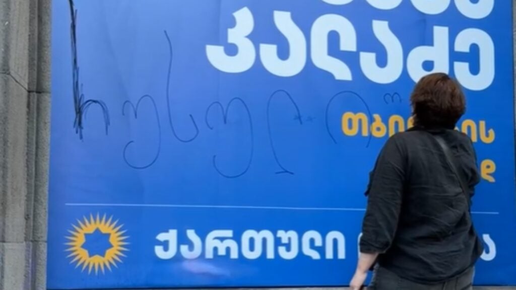 კალაძის საარჩევნო ბანერზე წარწერისთვის ხოშტარიას 1 წლითა და 6 თვით პატიმრობა მიესაჯა