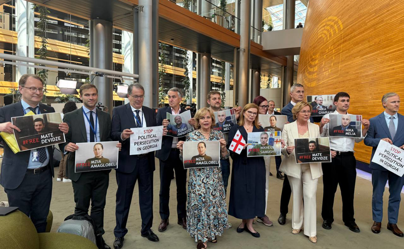 ევროპარლამენტარებმა აქციების დროს დაკავებული პირებისა და პოლიტიკოსების მხარდამჭერი პერფორმანსი მოაწყვეს