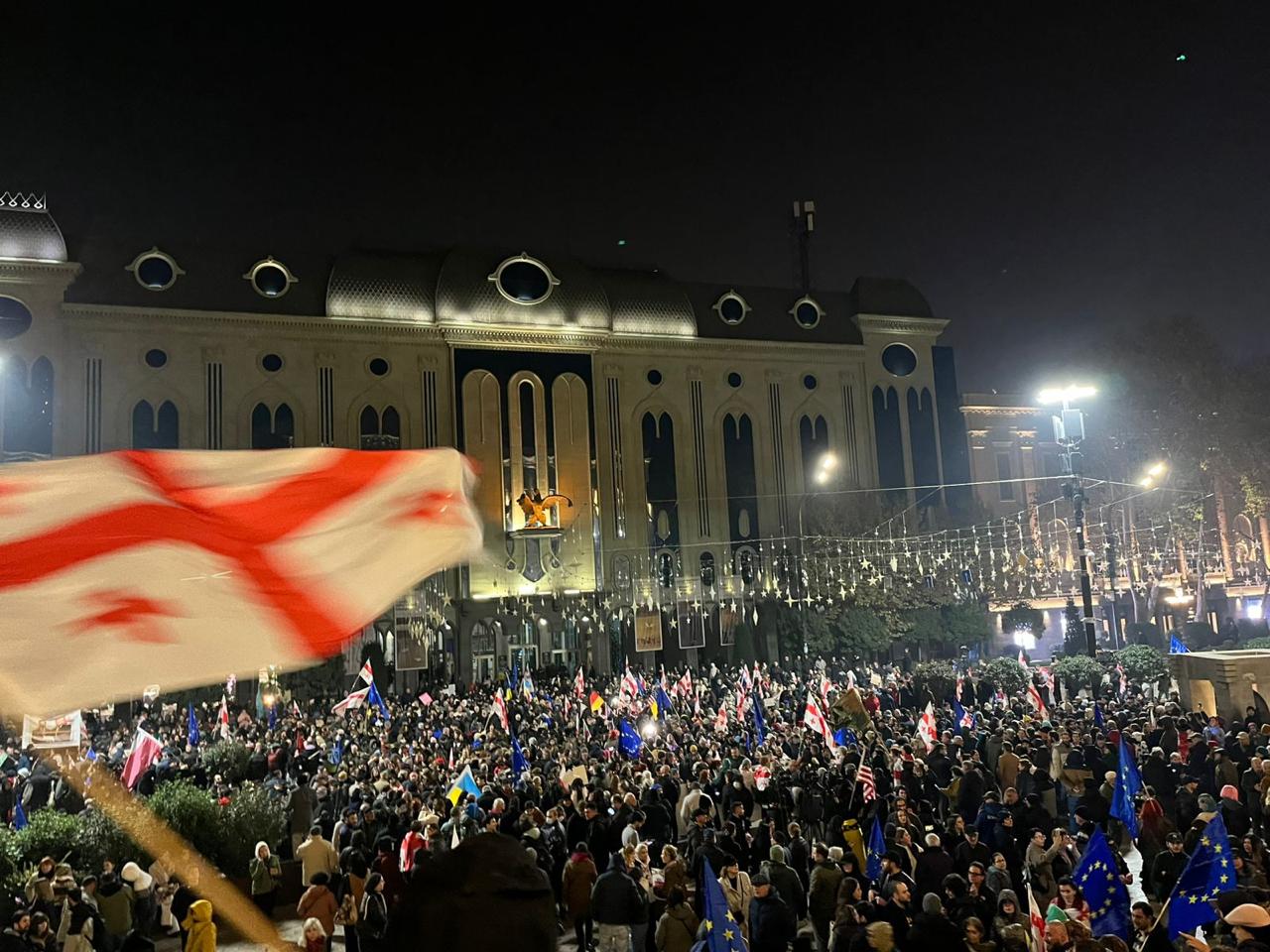 პარლამენტის წინ, უწყვეტი პროტესტის დაწყებიდან ერთი წლის თავზე საპროტესტო აქცია მიმდინარეობს