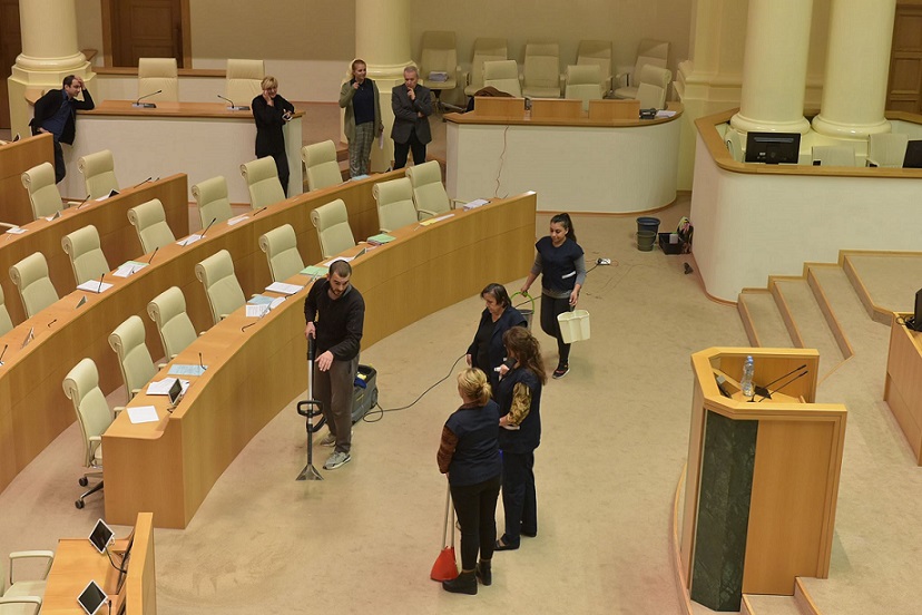 პარლამენტის პლენარულ სხდომათა დარბაზს ქიმიური წმენდა უტარდება - ვიდეო