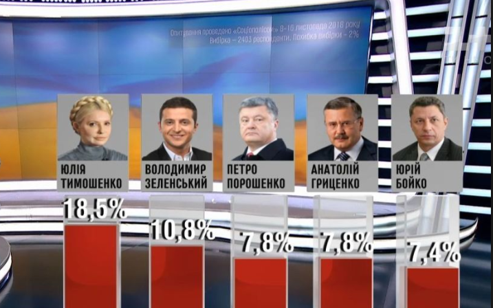 პოროშენკოს რეიტინგებში ცნობილი კომიკოსი ვლადიმერ ზელენსკი უსწრებს