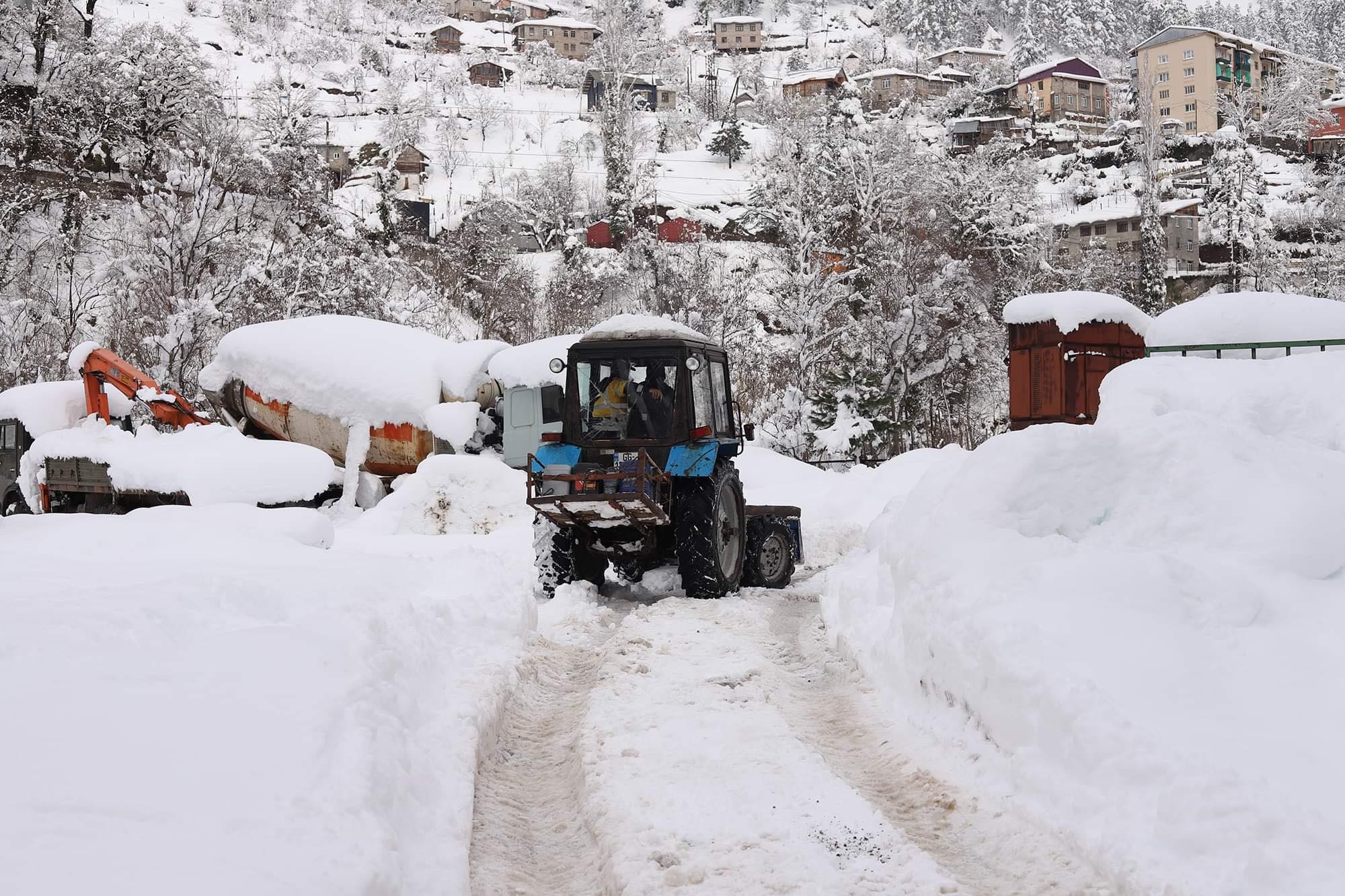 შუახევში, დიდთოვლობით გამოწვეული საავტომობილო გზების გაწმენდა მესამე დღეა ინტენსიურად მიმდინარეობს