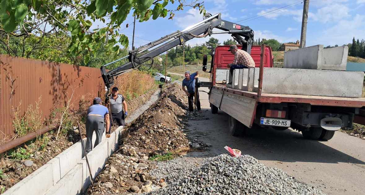 კოდისწყაროში სანიაღვრე არხის რკინა ბეტონის კიუვეტებით მოწყობის სამუშაო მიმდინარეობს