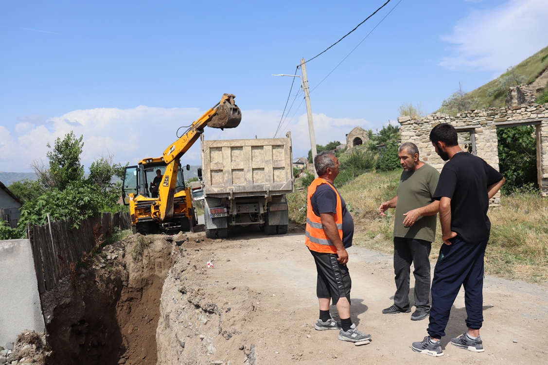 სოფელ იდლეთში რკინა-ბეტონის საყრდენი კედელი შენდება