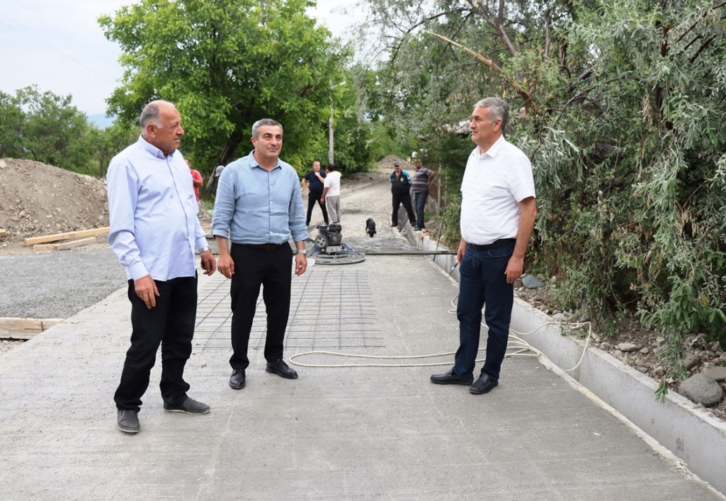 სოფელ ერთაწმინდაში გზის საფარის მოწყობა მიმდინარეობს