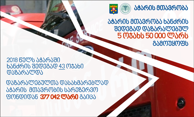 აჭარის მთავრობამ სარეზერვო ფონდიდან 2018 წელს ხანძრით დაზარალებული 48 ოჯახისთვის 377 042 ლარი კომპენსაცია გასცა