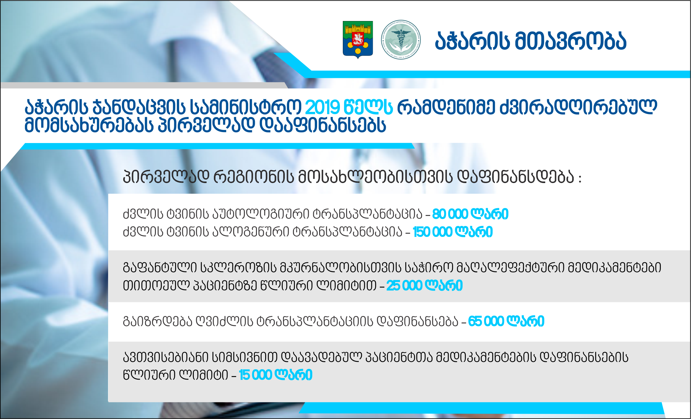 აჭარის ჯანდაცვის სამინისტრო 2019 წელს რამდენიმე ძვირადღირებულ მომსახურებას პირველად დააფინანსებს