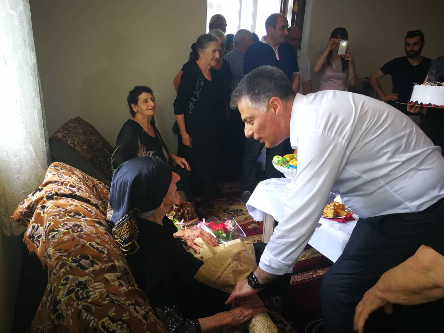სოფელ ქაქუთში მცხოვრებ ფატი მართალიშვილს 100 წლის იუბილე მიულოცეს და 1000 ლარი გადასცეს