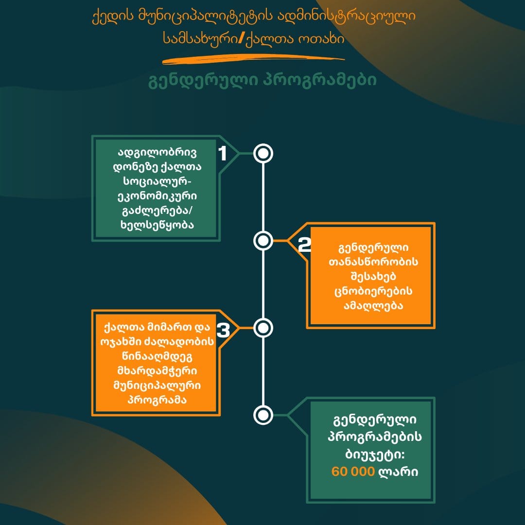 მერია - ქედის მუნიციპალიტეტის ადმინისტრაციული სამსახურის, ქალთა ოთახის გენდერული პროგრამების ბიუჯეტი გაიზარდა