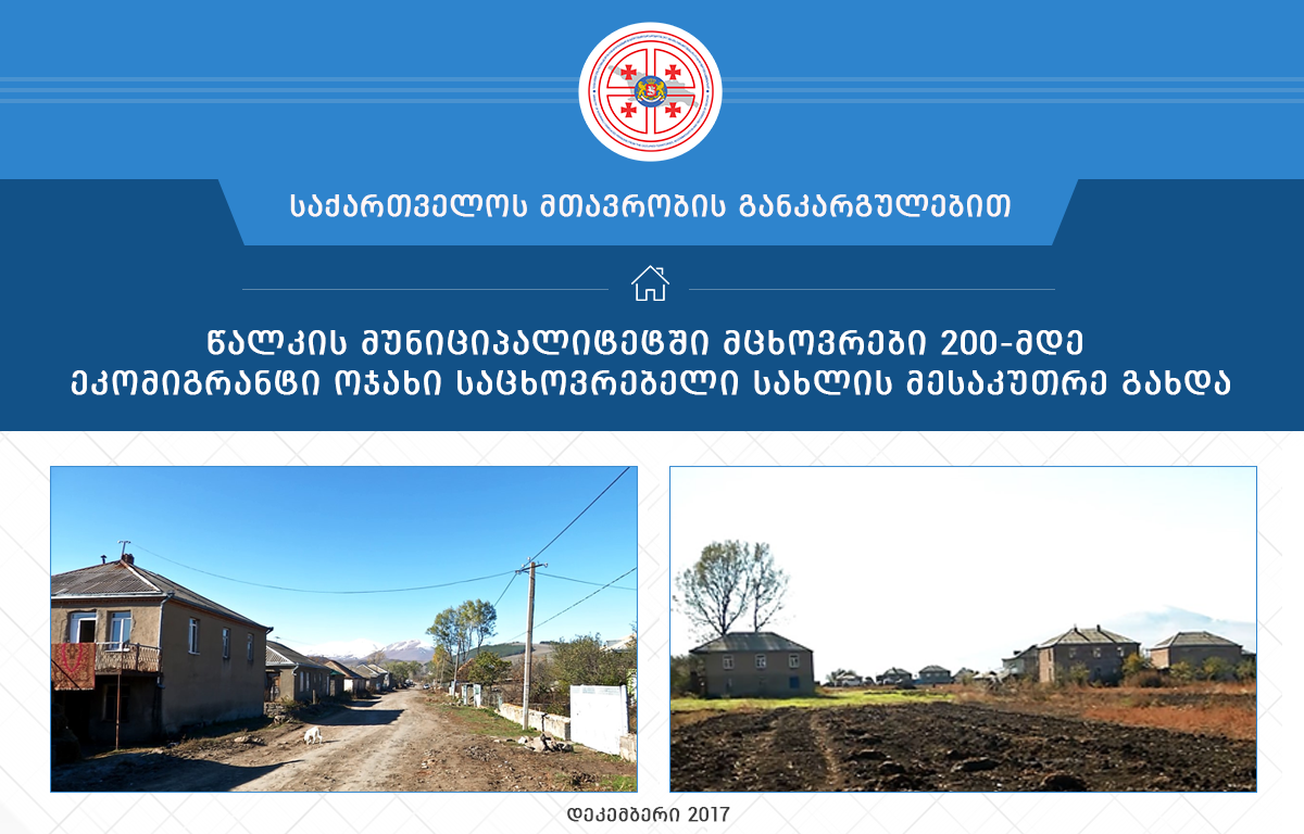 წალკის მუნიციპალიტეტში სახლი 200 ეკომიგრანტ ოჯახს დაუკანონდა