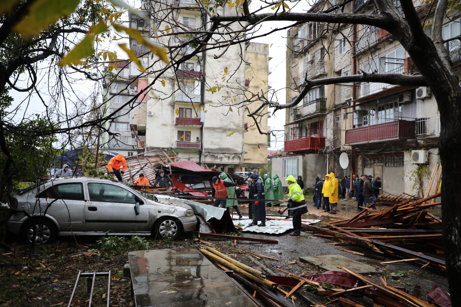 ფოთში ძლიერმა ქარმა მრავალბინიანი სახლის ნაწილს სახურავი გადახადა - დაზიანებულია ავტომანქანები