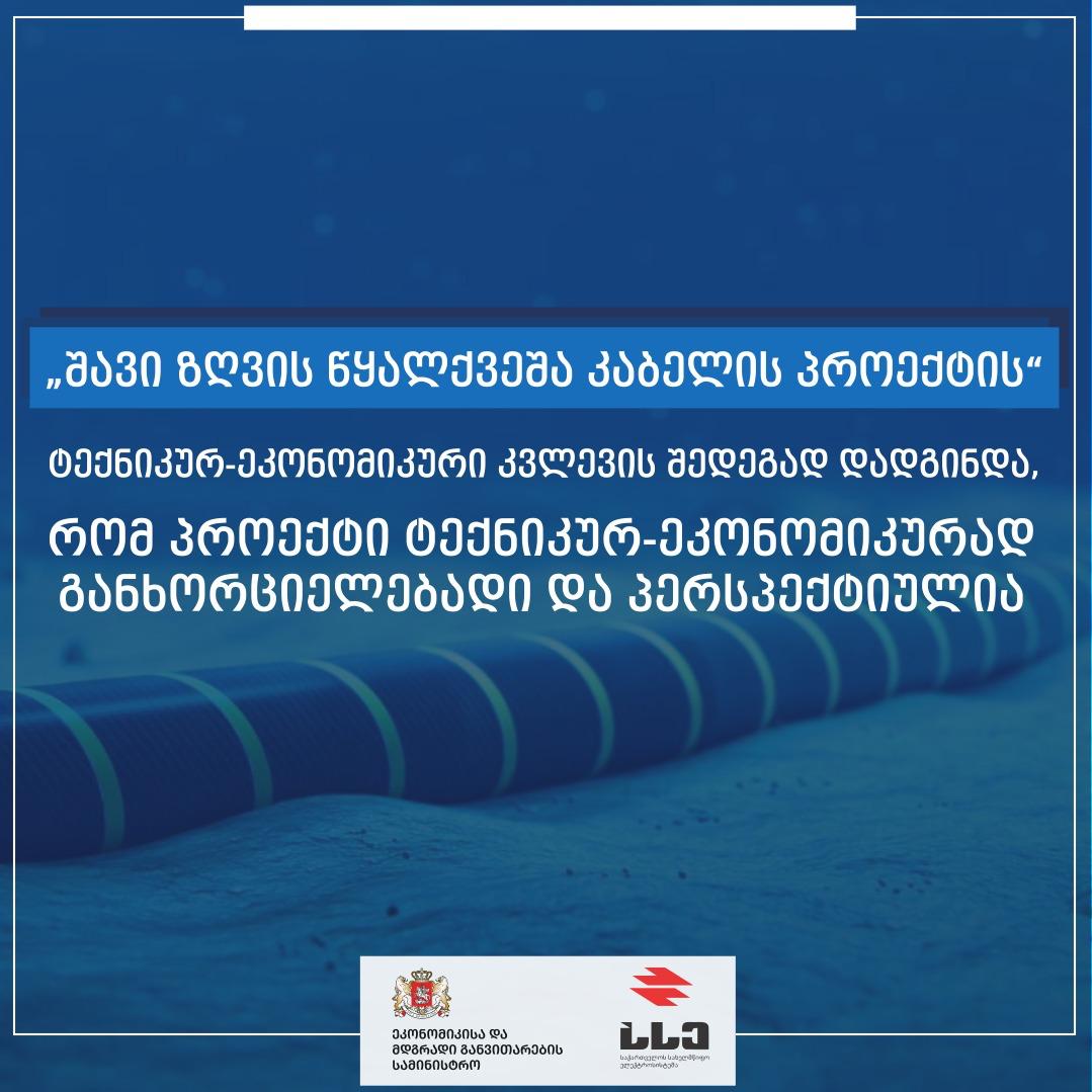ეკონომიკის სამინისტრო - საერთაშორისო კვლევამ „შავი ზღვის წყალქვეშა კაბელის პროექტი“ პერსპექტიულად და ტექნიკურ-ეკონომიკური თვალსაზრისით განხორციელებადად მიიჩნია