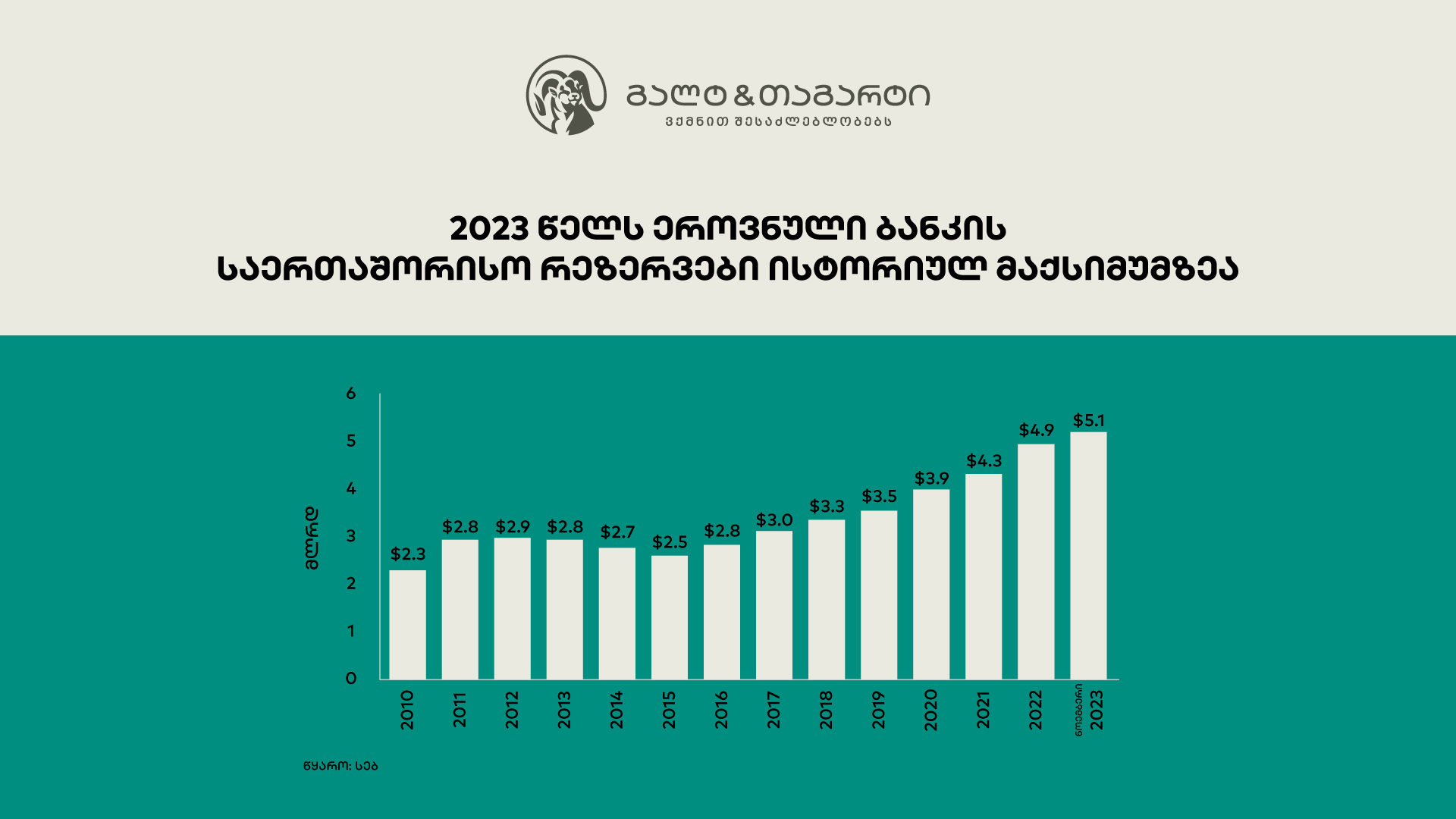 „გალტ & თაგარტი“ - საერთაშორისო რეზერვები $5.1 მილიარდია