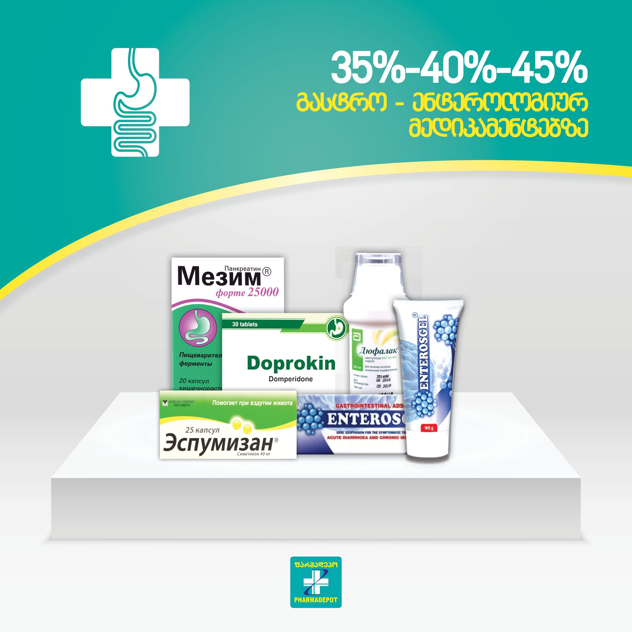 სააღდგომოდ „ფარმადეპო“ გასტრო-ენტეროლოგიურ, ყველაზე მოთხოვნად მედიკამენტებზე 45%-მდე ფასდაკლებას გთავაზობთ