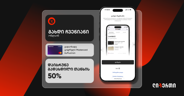 გახდი ჩვენიანი, გადაიხადე ციფრული Mastercard ბარათით და დაიბრუნე გადახდილი თანხის 50%