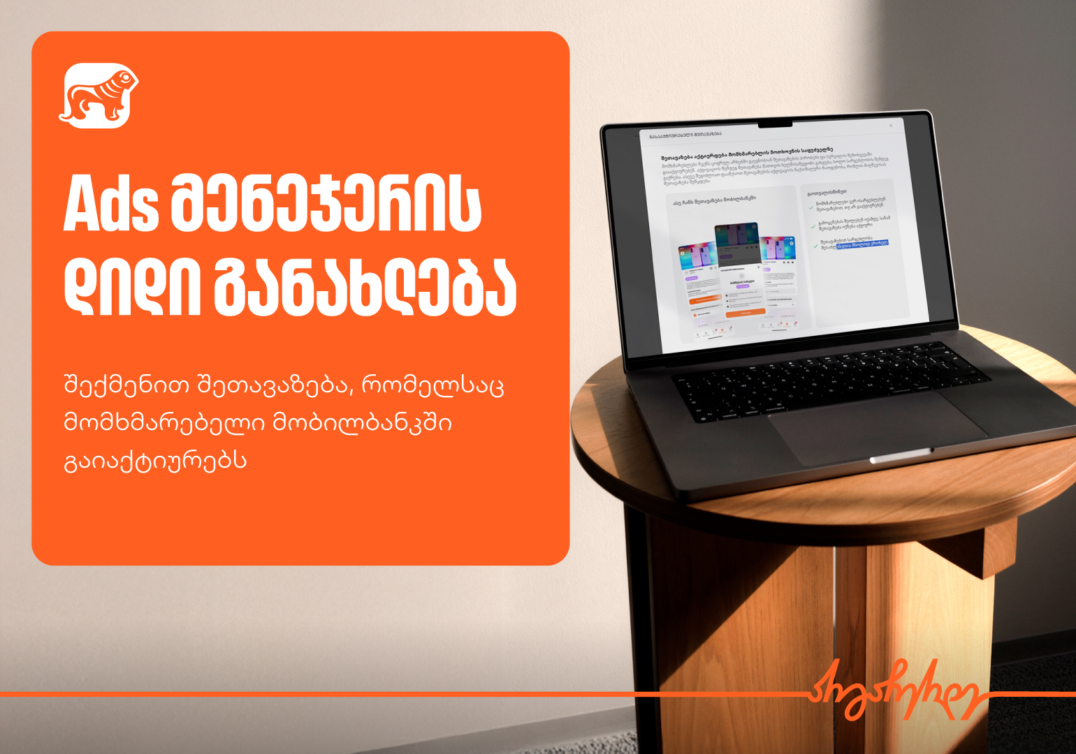 საქართველოს ბანკის Ads მენეჯერს მობილბანკით გასააქტიურებელი შეთავაზების ფუნქციონალი დაემატა