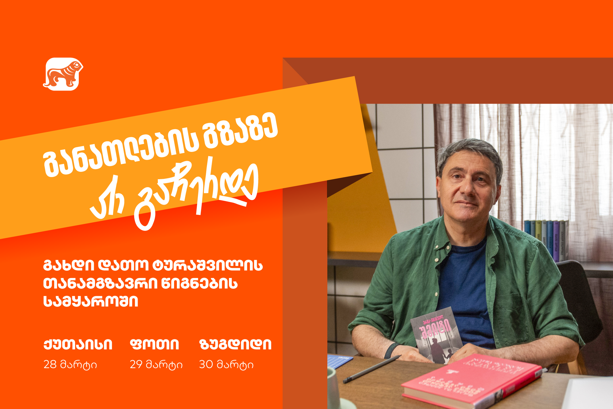 ერთად ვიმოგზაუროთ წიგნის სამყაროში - საქართველოს ბანკი ქუთაისში, ფოთსა და ზუგდიდში დათო ტურაშვილთან შეხვედრებს გამართავს