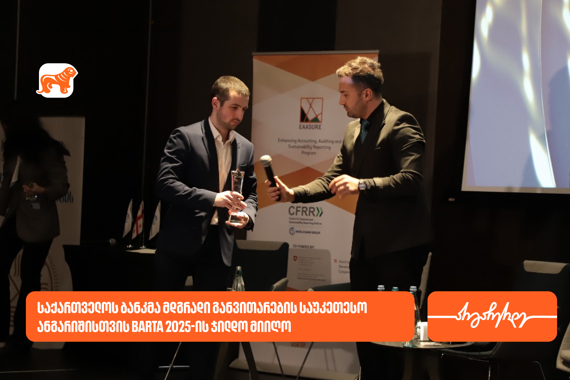საქართველოს ბანკმა მდგრადი განვითარების საუკეთესო ანგარიშისთვის BARTA 2025-ის ჯილდო მიიღო