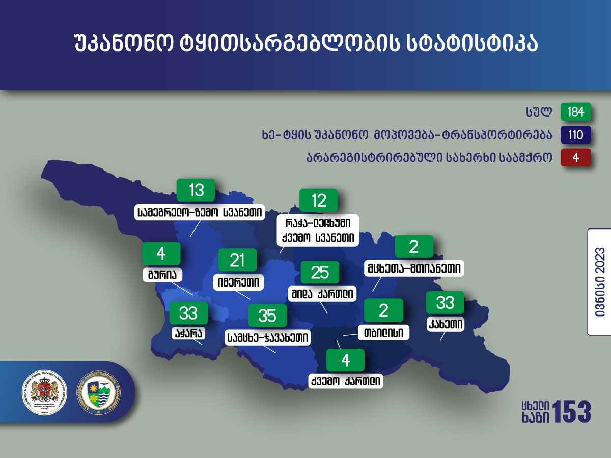 გარემოსდაცვითი ზედამხედველობის დეპარტამენტის თანამშრომლებმა ივნისში უკანონო ტყითსარგებლობის 184 ფაქტი გამოავლინეს