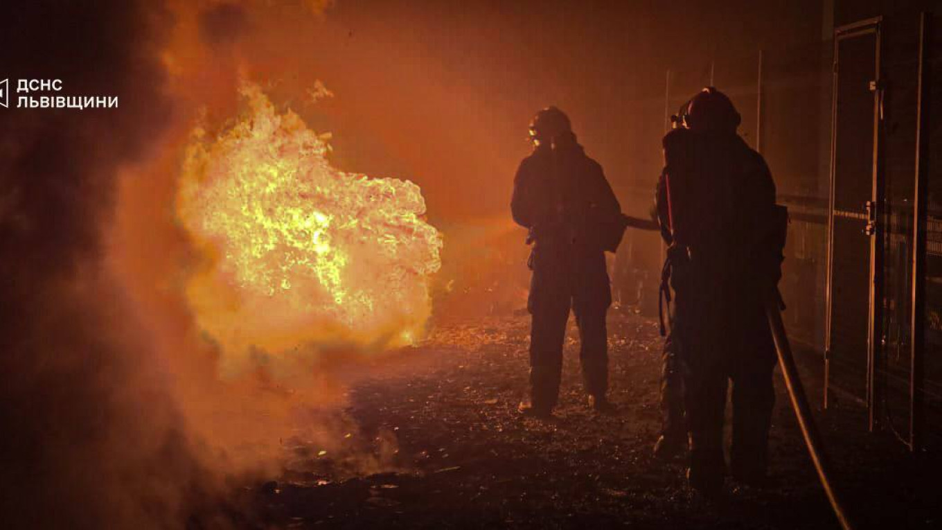 კიევში რუსული დარტყმების შემდეგ ხანძარი გაჩნდა
