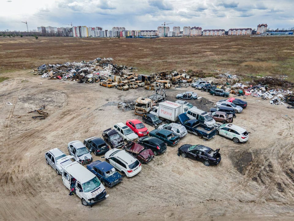 ბუჩაში მანქანების სასაფლაო გამოჩნდა - უკრაინის შსს-ში ვიდეოს აქვეყნებს