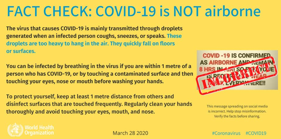 ჯანმრთელობის მსოფლიო ორგანიზაცია - კორონავირუსი გადაეცემა მხოლოდ წვეთოვანი გზით
