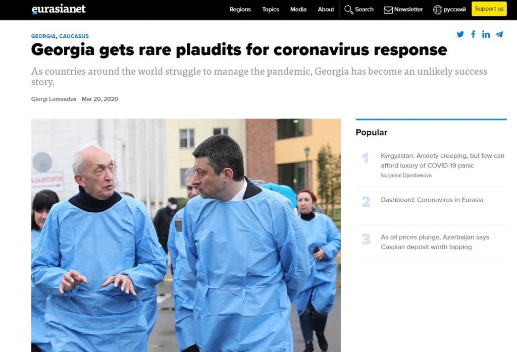 „ევრაზიანეტი” - საქართველოს იშვიათ ტაშს უკრავენ კორონავირუსზე რეაგირებისთვის, ქვეყანა მოულოდნელ წარმატებას აღწევს