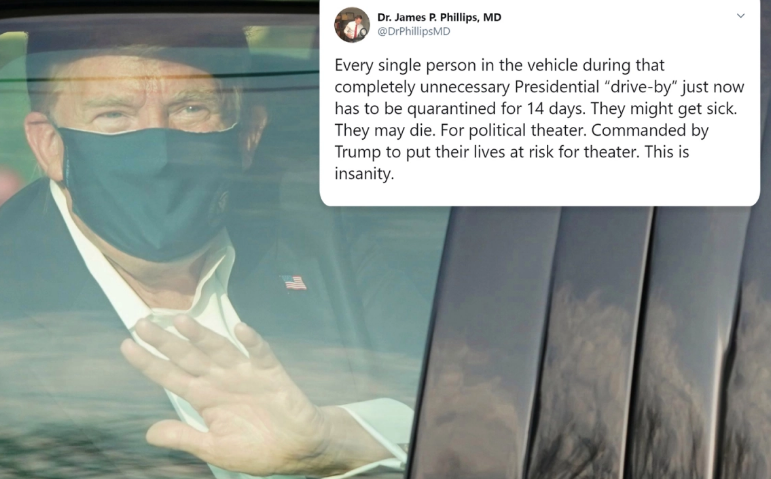 გასაოცარი უპასუხისმგებლობაა - დონალდ ტრამპს ექიმი კარანტინის დარღვევის გამო აკრიტიკებს