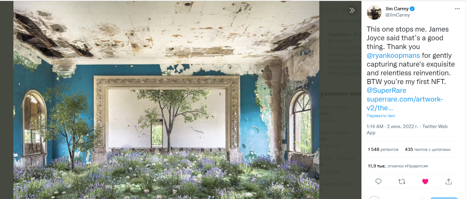 ჰოლოვუდის მსახიობმა ჯიმ ქერიმ წყალტუბოში გადაღებული ფოტოს NFT შეიძინა