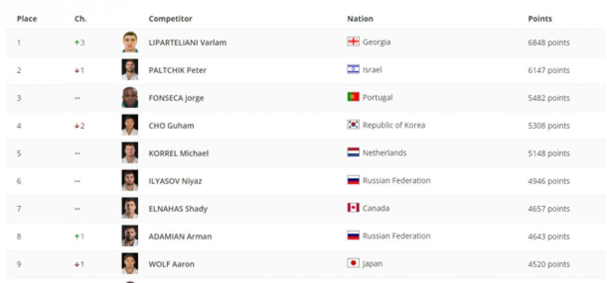 ამის შესახებ ძიუდოს საერთაშორისო ფედერაციამ ოფიციალურ საიტზე განახლებული რეიტინგი გამოაქვეყნა, სადაც ქართველი მის წონით კატეგორიაში სამი ქულით დაწინაურდა და პირველ ადგილს იკავებს.