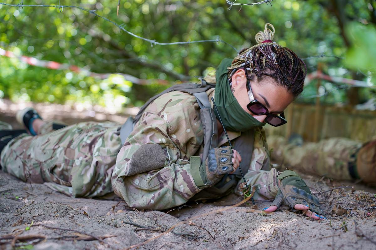 მამაკაცებსა და ქალებს ასწავლიდნენ კალაშნიკოვის ავტომატებიდან და ტრავმული პისტოლეტებიდან სროლას. შემდეგ პროფესიის მიხედვით ანაწილებდნენ. ევგენია თავის განყოფილებაში ერთადერთი ქალია და დროდადრო უნდა ეჯიბრო მამაკაცებს. „როგორაა ჯარში მსასურობის ამბავი მამაკაცებში? ისინი ერთმანეთს აღიქვამენ როგორც ტყუპს, ან როგორც კონკურენტს. მაგრამ ისინი მე ვერ აღიქვამენ ტყუპად, რადგან მე ქალი ვარ. უფრო მეტად კონკურენტად აღმიქვამენ”,- განაცხადა ევგენიამ. მისივე თქმით, ომის დროს შიში, ნორმალურია. ამას ყველა განიცდის, როგორც ქალი, ასევე მამაკაცი.