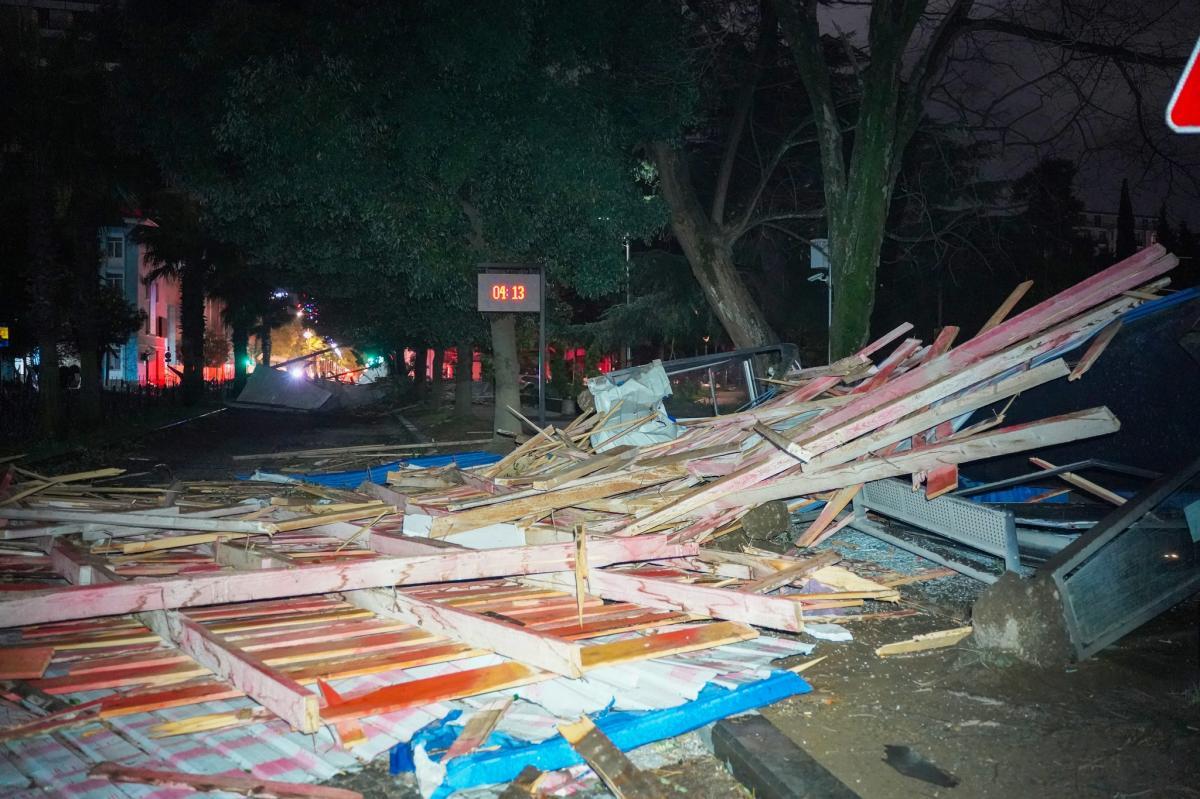 ძლიერი ქარი ბათუმში - დაზიანებულია მრავალბინიანი სახლების სახურავები და მუნიციპალური ავტობუსის გაჩერებები