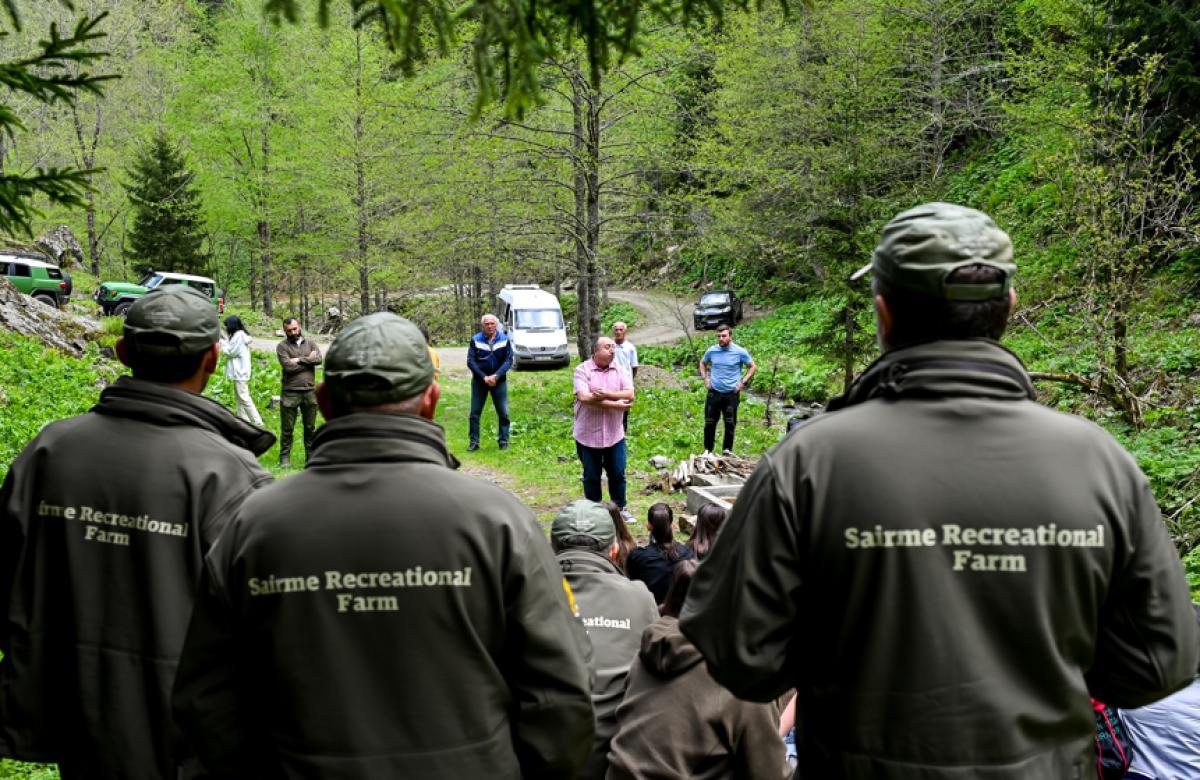 ტურს დავით ლიკლიკაძე უძღვებოდა, რომელმაც ახალგაზრდებს წაუკითხა ლექცია თემაზე - „ეკოლოგია და ადამიანის როლი ეკოსისტემის შენარჩუნებაში“. ექსკურსიის ორგანიზატორი „საირმეს რეკრეაციული ფერმის“ ადმინისტრაცია იყო. გაწერილი გეგმის მიხედვით, ექსკურსიები რეგიონის სკოლის მოსწავლეებისთვის მოეწყობა, შემდეგ არეალი გაფართოვდება და საგანმანათლებლო ღონისძიებებში ჩართვას სხვა მუნიციპალიტეტებში მცხოვრები მოზარდები და ახალგაზრდებიც შეძლებენ. პარალელურად, ტერიტორიაზე სამუშაოები ინტენსიურად გრძელდება. უახლოეს მომავალში 13 000 ჰექტარ ფართობზე ადგილობრივი თუ უცხოელი ტურისტებისთვის კეთილმოეწყობა საფეხმავლო ბილიკები, ასევე განისაზღვრება რუკები ლაშქრობისათვის. მოგზაურთა უსაფრთხო და საინტერესო გადაადგილებისათვის კი სპეციალური მანიშნებლები განთავსდება. აღსანიშნავია, რომ „საირმეს რეკრეაციულ ფერმაში“ მიმდინარე წელს უკვე ჩაიდო 700 000 ლარის ინვესტიცია. დასაქმდა 6 რეინჯერი და 1 სპეციალისტი. ასევე მათ გადაეცათ მაღალი გამავლობის 4 ავტომობილი, ბაგის ტიპის 2 ავტომობილი, 2 თოვლმავალი და 2 ცხენი. პროექტის ფარგლებში უკვე დამონტაჟდა 25 ფოტოხაფანგი, რომელთა რაოდენობაც უახლოეს პერიოდში გასამმაგდება. მონიტორინგისთვის შეძენილია მაღალი ხარისხის 1 დრონი. „საირმეს რეკრეაციული ფერმის“ პროექტის ფარგლებში, მდინარე წაბლარისწყლის ერთ-ერთ შენაკადში წითელწინწკლებიანი კალმახის თვალის სტადიაზე არსებული 30 000 ქვირითი გაეშვა. ხაზგასასმელია, რომ ტყით სარგებლობის საშუალება ადგილობრივ მოსახლეობას არ შეეზღუდება. ისინი ტერიტორიაზე კანონით დაშვებული ნებისმიერი საქმიანობის შესრულებას შეძლებენ.