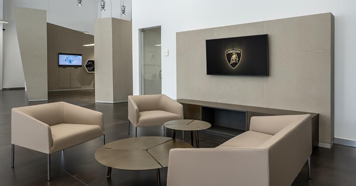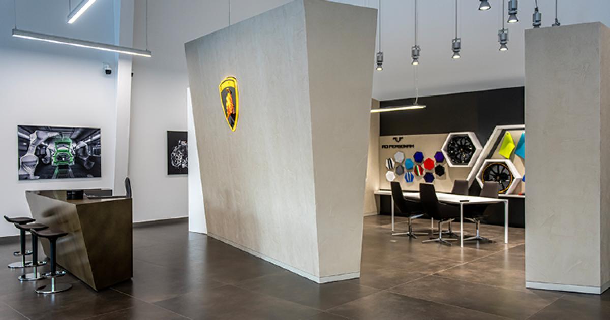 Lamborghini-ს ცენტრის საერთო ფართი 1,200 მ²-ია. აქედან 320 მ² საექსპოზიციო დარბაზს ეთმობა. შოურუმში მაღალი ხარისხის ევროპული წარმოების ტექნიკური ინვენტარი და ავეჯია განთავსებული.