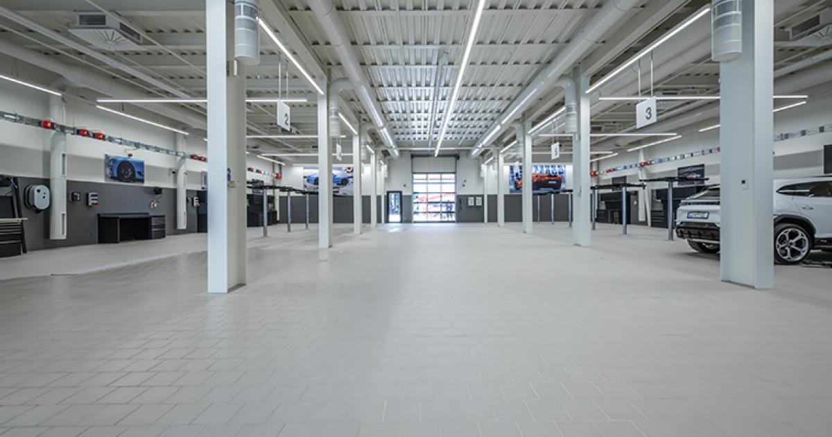 რვა სამუშაო სივრცისაგან შედგება სერვისის ზონა, სადაც სპეციალურად გადამზადებული მექანიკოსები თანამედროვე დანადგარებით მუშაობენ. ცენტრის ეს ნაწილი აღჭურვილია უახლესი თაობის ტექნოლოგიით: ინტეგრირებულია Hunter-ის პრემიუმ კლასის სადიაგნოსტიკო და გასწორების სისტემა, Hermann-ის ამწეები უზრუნველყოფს უსაფრთხო და სტაბილურ სამუშაო გარემოს Work Bay ზონაში. Hormann-ის პანორამული კარები კი დამატებით გამჭვირვალობასა და ენერგოეფექტიანობას უზრუნველყოფს.