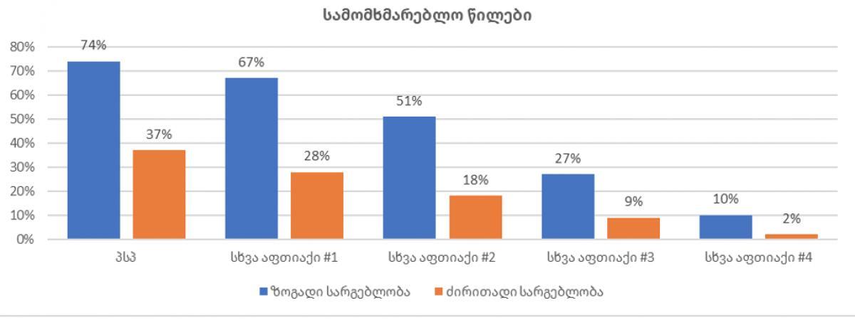 ლიდერის პოზიციას ადასტურებს სამომხმარებლო წილების განაწილებაც - PSP ლიდერია არა მხოლოდ ცნობადობის, არამედ სამომხმარებლო წილების მიხედვითაც. ჯამურად, მომხმარებელთა 74% ზოგადად სარგებლობს PSP-ს მომსახურებით, ხოლო 37% არჩევანს ძირითადად PSP-ზე აკეთებს.