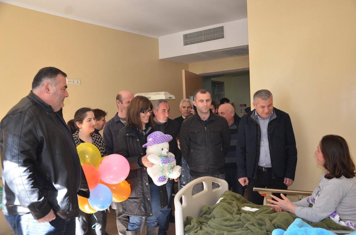 ახალშობილი დღეს მუნიციპალიტეტის მერმა ფრიდონ ფუტკარაძემ, საკრებულოს თავმჯდომარე გიორგი დავითაძემ, საკრებულოს წევრებმა და სხვა ხელმძღვანელ პირებმა მოინახულეს და დედა-შვილს საჩუქრები გადასცეს.