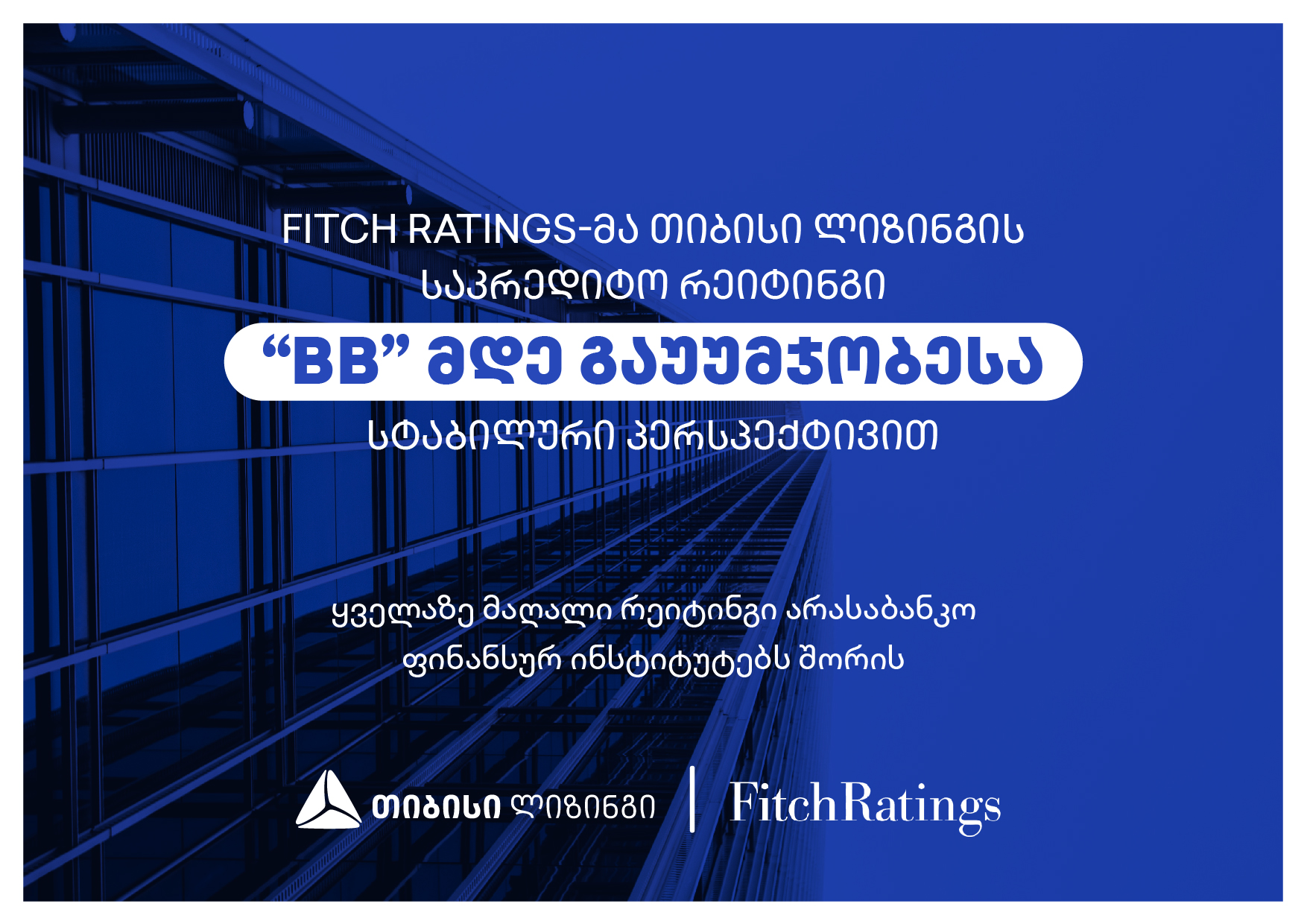 Fitch Ratings-მა „თიბისი ლიზინგის“ საკრედიტო რეიტინგი „BB“-მდე, სტაბილური პერსპექტივით გააუმჯობესა