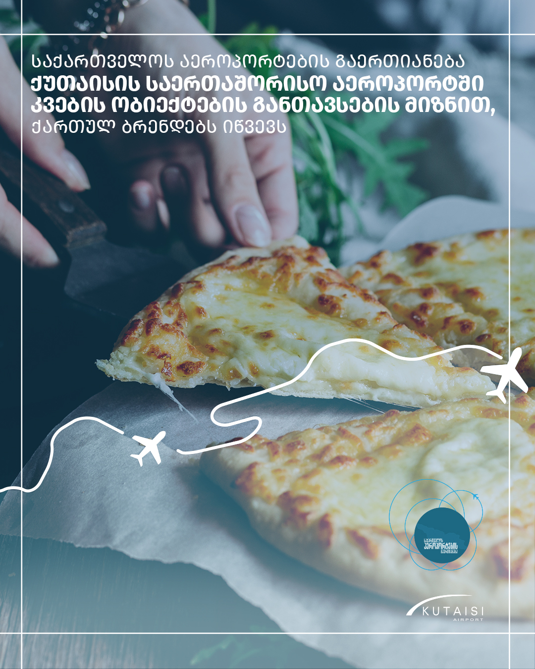 საქართველოს აეროპორტების გაერთიანება ქუთაისის საერთაშორისო აეროპორტში ქართული კვების ობიექტების განთავსების მიზნით ქართულ ბრენდებს იწვევს