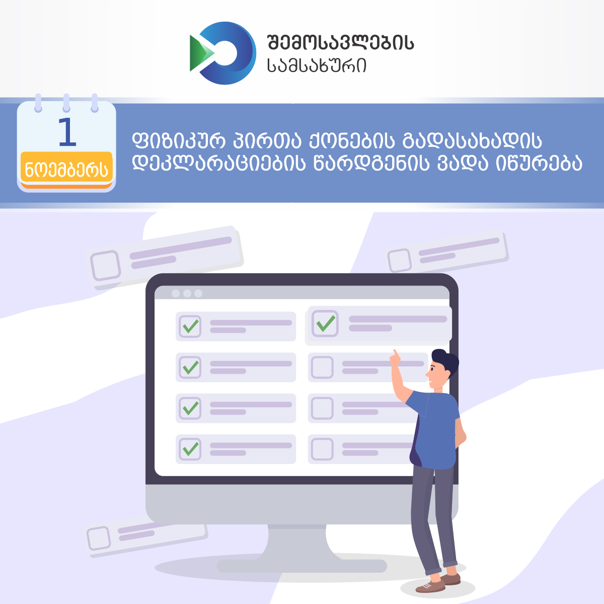1-ელ ნოემბერს ფიზიკურ პირთა ქონების გადასახადის დეკლარაციების წარდგენის ვადა იწურება