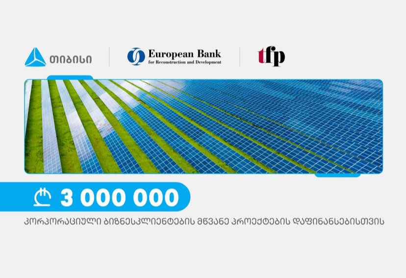 „თიბისიმ“, კორპორაციული ბიზნესკლიენტების მწვანე პროექტების დაფინანსებისთვის, EBRD-ისგან 3 მილიონი ლარი მიიღო