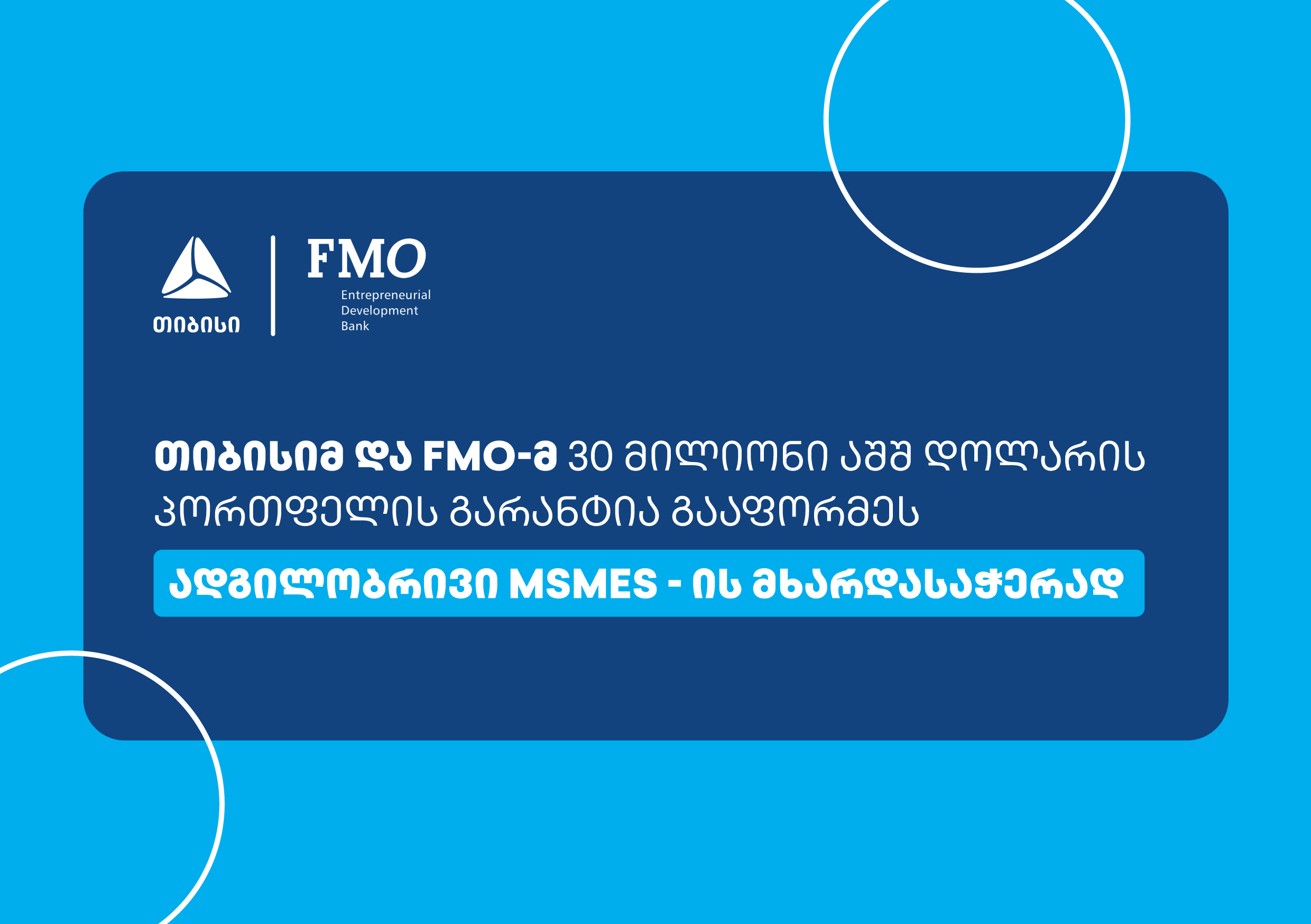 „თიბისიმ“ და FMO-მ ადგილობრივი მცირე და საშუალო ბიზნესის მხარდასაჭერად 30 მილიონი აშშ დოლარის საგარანტიო ხელშეკრულება გააფორმეს