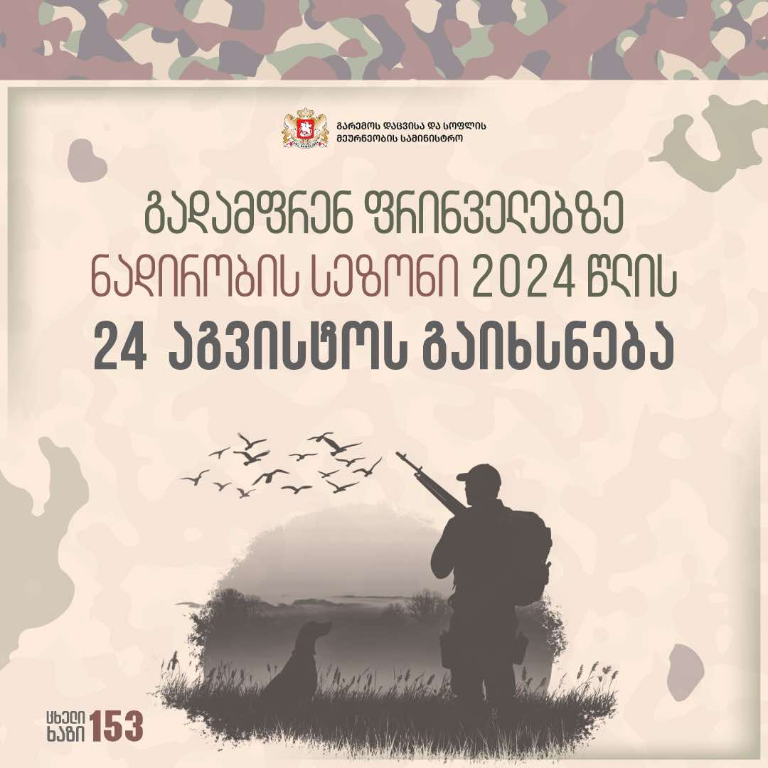 გადამფრენ ფრინველებზე ნადირობის სეზონი 2024 წლის 24 აგვისტოს გაიხსნება