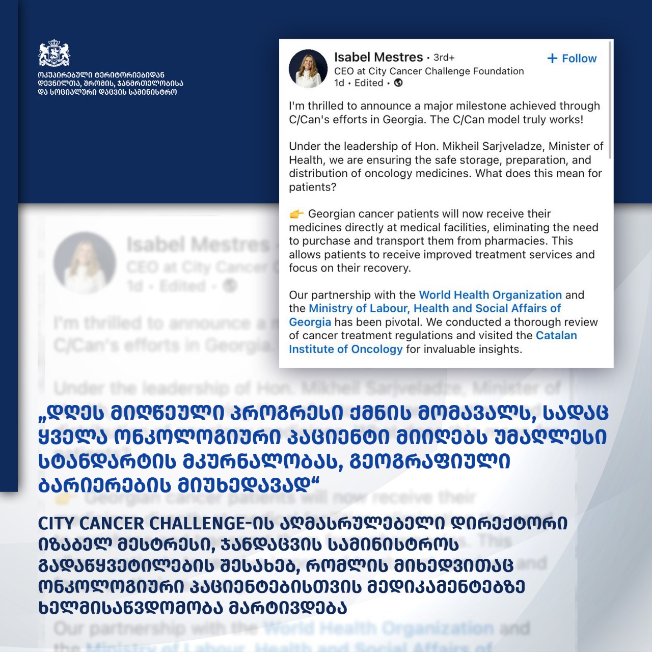 იზაბელ მესტრესი - მიღწეული პროგრესი ქმნის მომავალს, სადაც ყველა ონკოლოგიური პაციენტი უმაღლესი სტანდარტის მკურნალობას მიიღებს