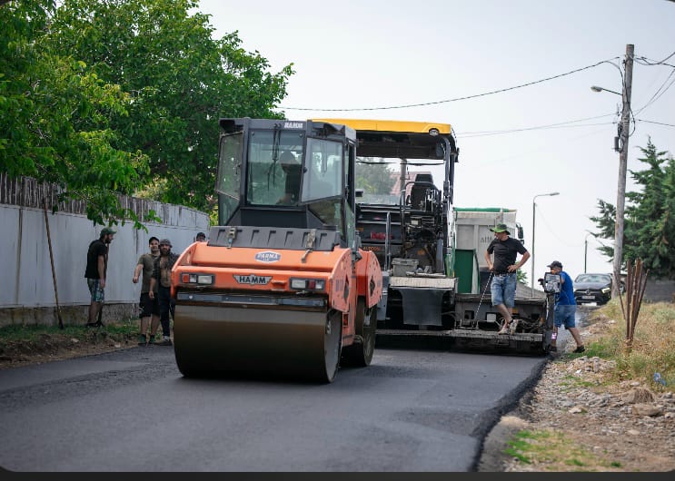 გლდანის რაიონის გამგეობა გიორგიწმინდას დასახლებაში, 9 აპრილის ქუჩაზე საგზაო სამუშაოებს ახორციელებს