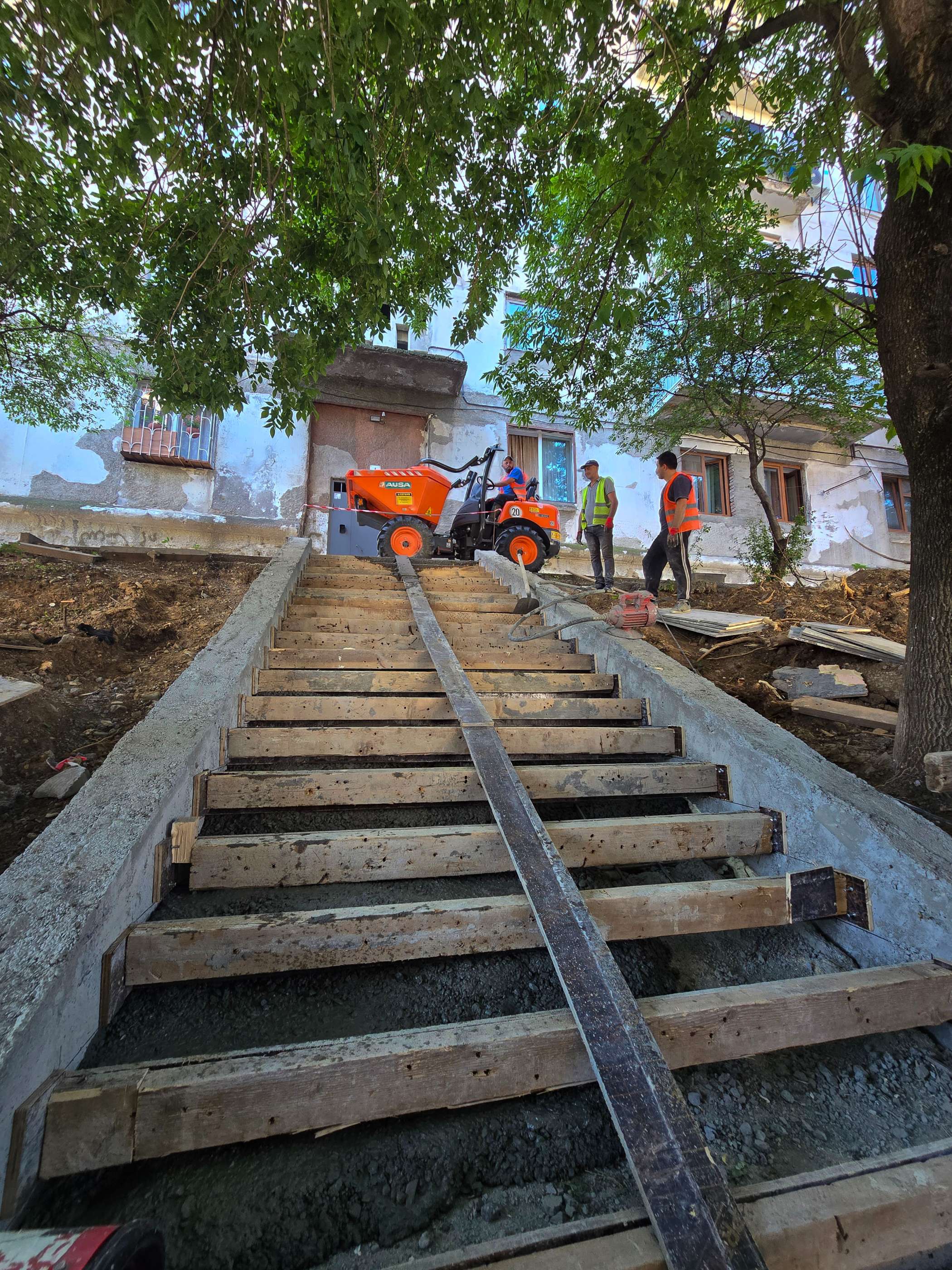 მუხიანში, IV ა მიკრორაიონის N11 კორპუსთან კედელი და კიბე ეწყობა