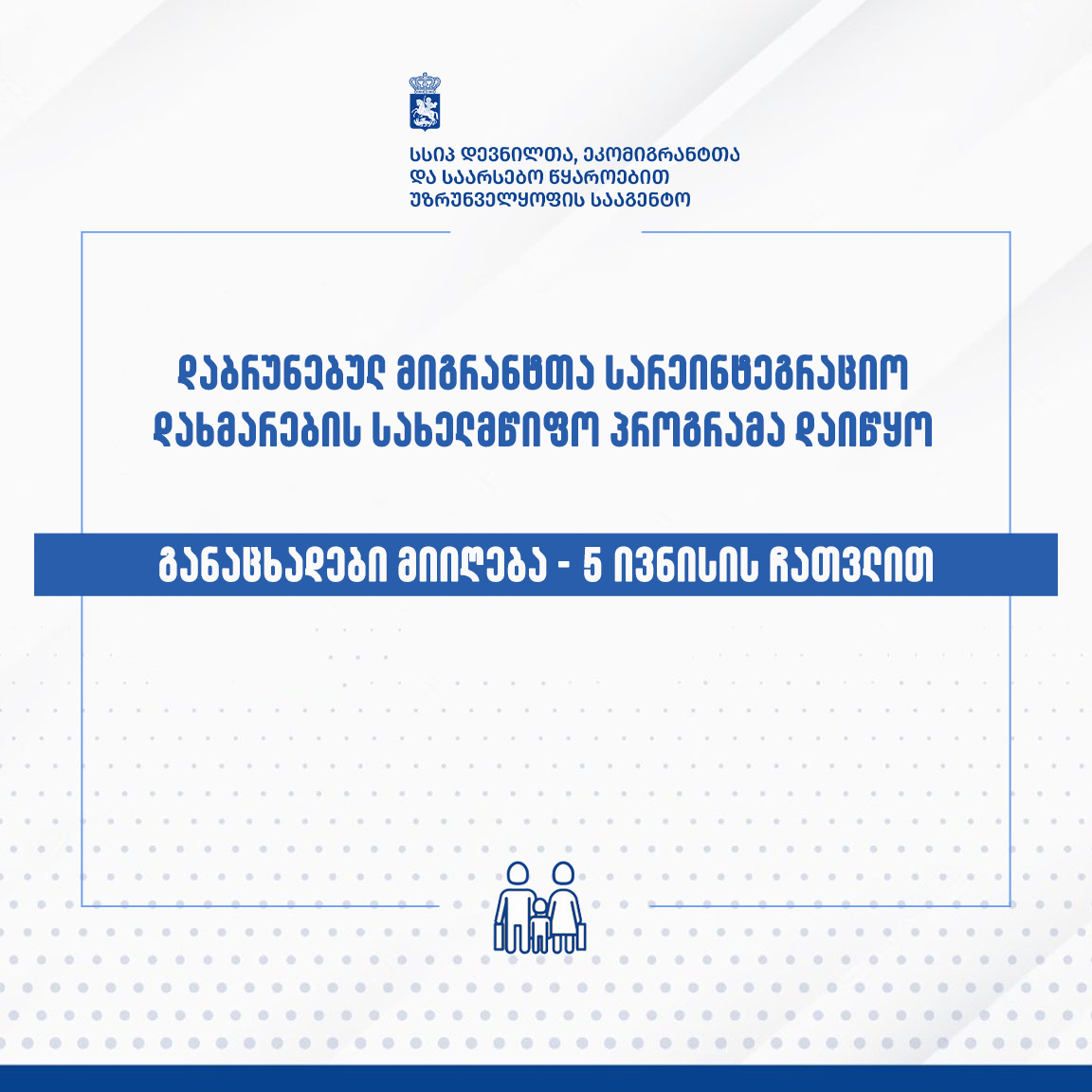 მიგრანტთა სარეინტეგრაციო დახმარების პროგრამის ფარგლებში განაცხადების მიღება დაიწყო
