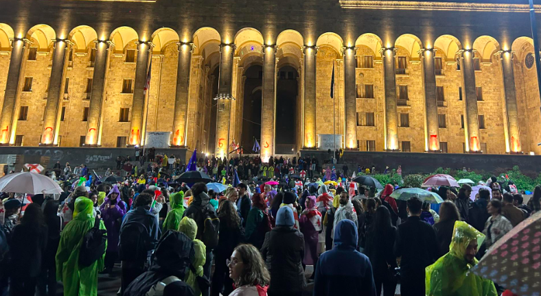 „კი ევროპას! არა რუსულ კანონს!“ - პარლამენტთან აქცია მიმდინარეობს