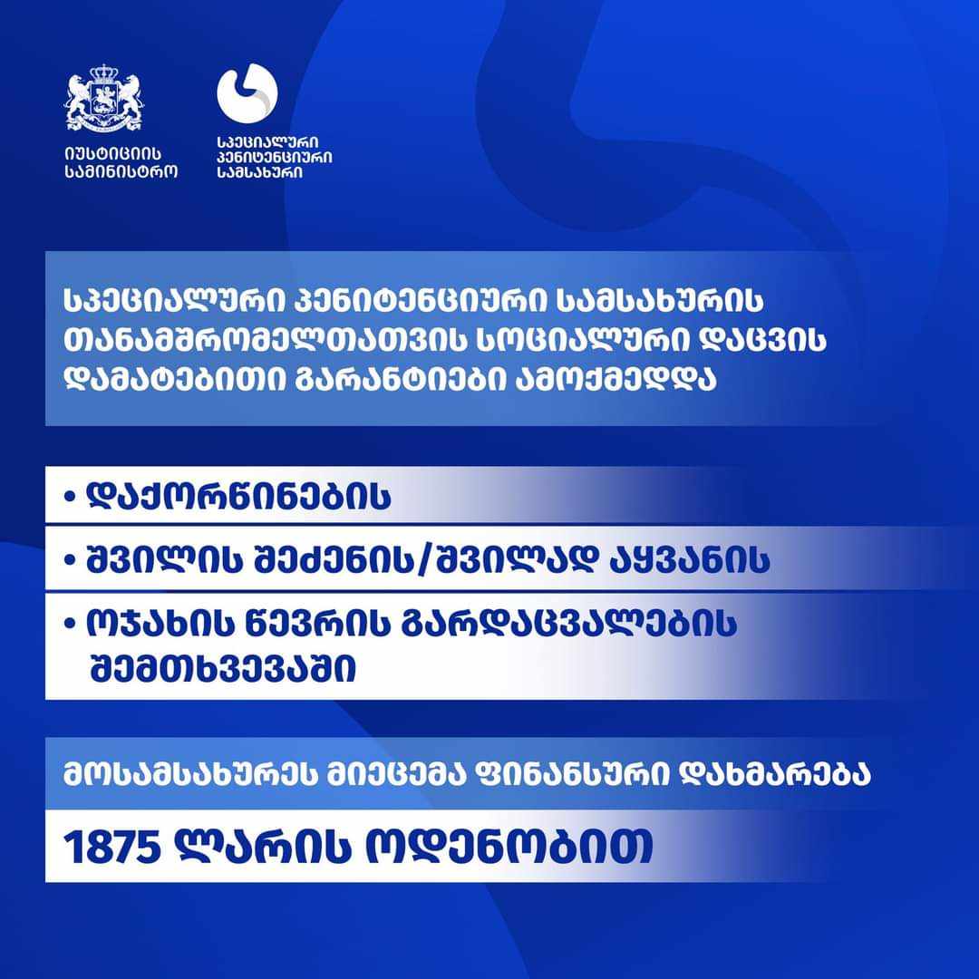 პენიტენციური - სპეციალური პენიტენციური სამსახურის მოსამსახურეთათვის სოციალური დაცვის დამატებითი გარანტიები განისაზღვრა