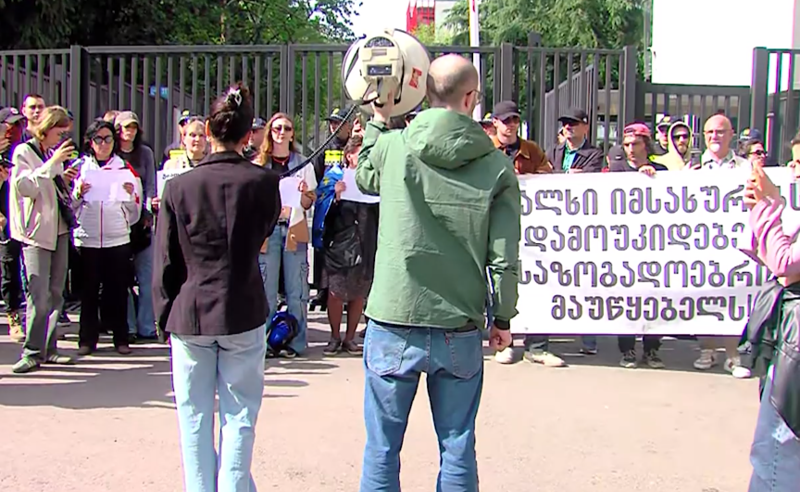 აქციაზე დაკავებულების ოჯახის წევრებმა საზოგადოებრივ მაუწყებელთან აქცია გამართეს